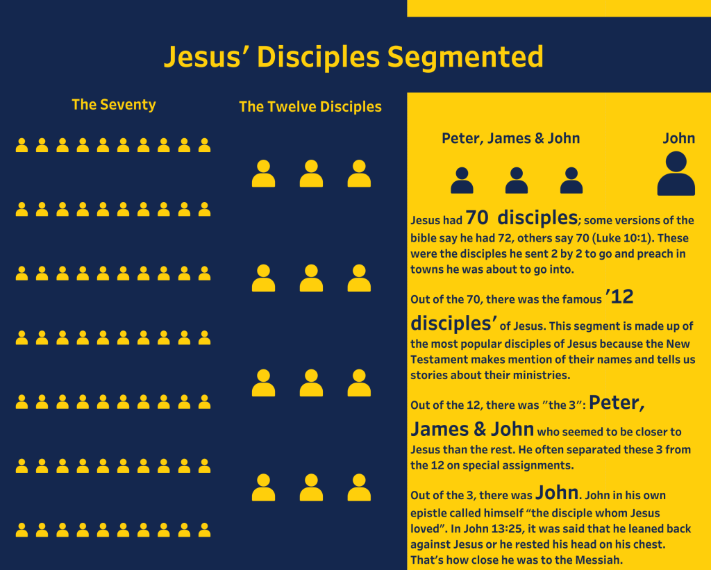 Out of the 70, there was the “12”. In Luke 6:12-16, we are told that Jesus spent all night praying before he selected the 12 out of the 70. They are the most popular disciples of Jesus because the New Testament makes mention of their names and tells us stories about their ministries. Even some New Testament books were written by some of them, about the details of some events of their ministries and even named after them. They were the ones to whom the promise of the coming of the Holy Spirit was made and they waited for it together with other believers in the upper room. These ones walked more closely with Jesus. Anytime he would speak a parable to the people, he would explain it to them privately. It was to these 12 that Jesus said he would no longer call ‘servants’ but ‘friends’ (John 15:15).